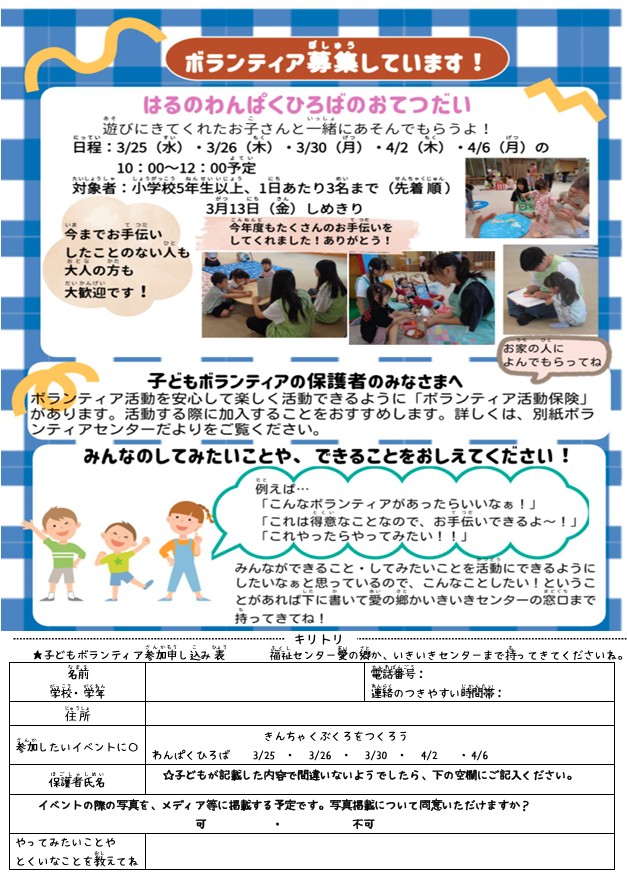 わんぱくひろば / 臨床心理士さんによるミニ講座・個別相談の延期のお知らせ
