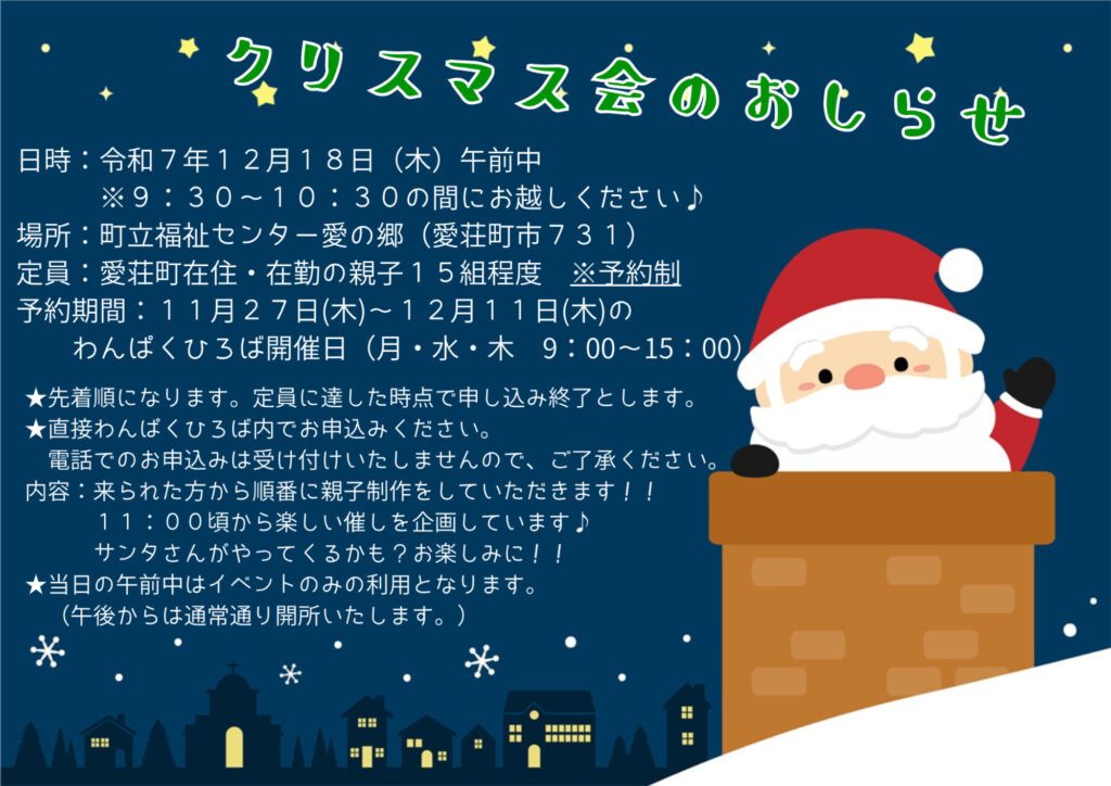 下記の日程でクリスマス会を実施します!!