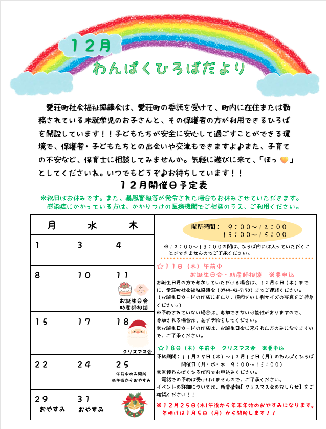 12月☆わんぱくひろばだよりを更新しました!!!