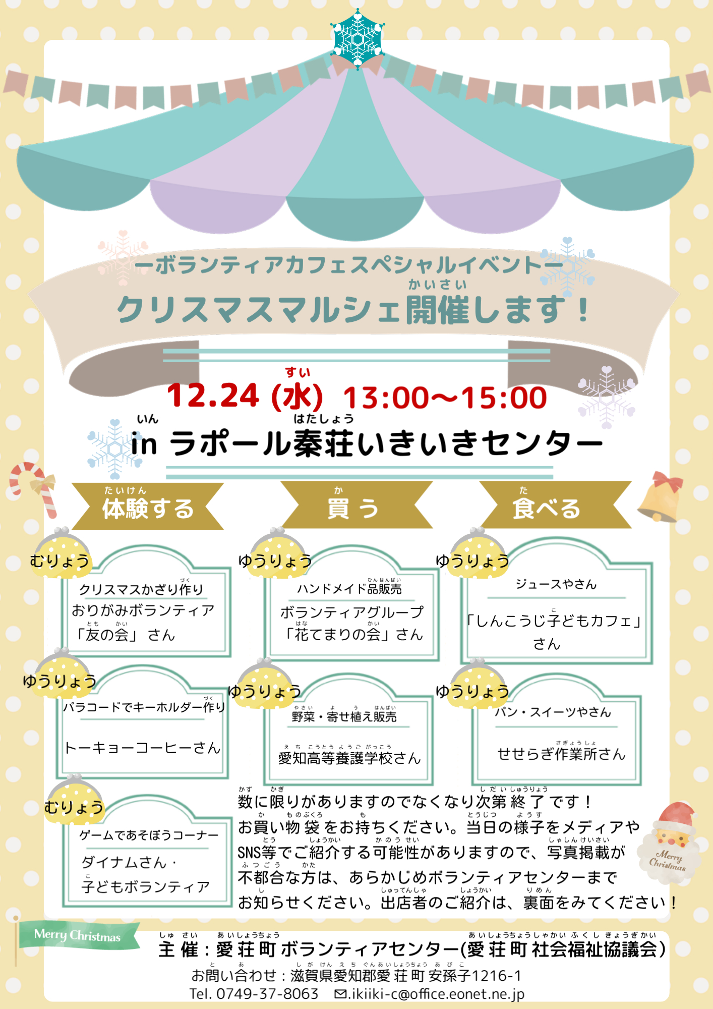 ★ボランティアカフェスペシャルイベントのお知らせ★